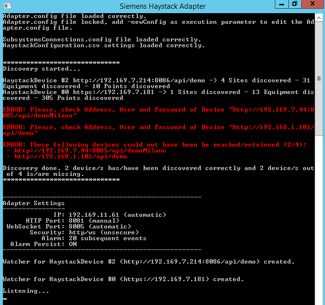 When running for the first time in console mode, the adapter creates the Adapter.config file and opens it in a new window with Notepad. NOTE: in all .config files, blank lines and lines starting with # are comments.