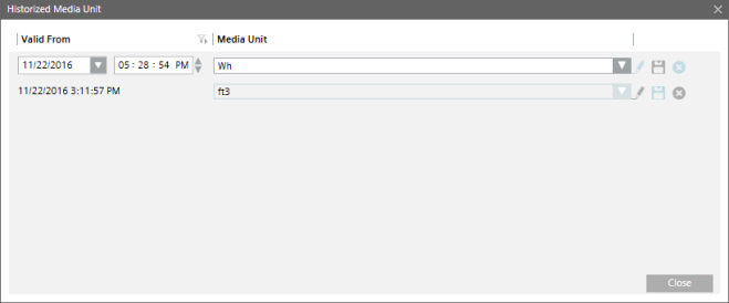 Edit | Allows you to edit an existing entry from the Media Unit and Valid From fields. |