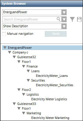 - Meters distributed on the basis of commercial or business perspective. For example, to monitor the energy consumption details of the different departments in an organization, you can create a hierarchy of the company with the various departments and the meters installed in each department.