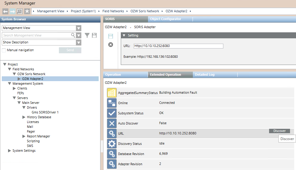 - Select Project > Field Networks > [SORIS network] > [OZW Device].