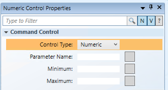 - From the Property View (Command Control Properties), expand the Command Control properties, and from the Control Type drop-down menu, select Numeric.