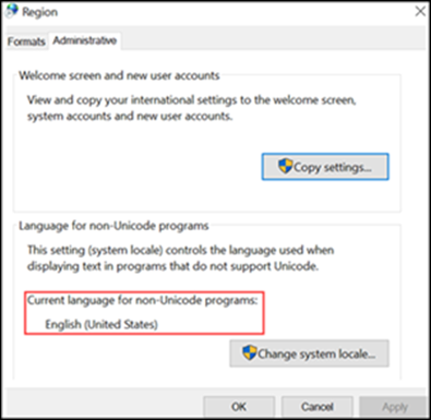 - The LocaleName is set according to the current Regional settings. To verify the Regional settings, navigate to Control panel > Region > Administrative.