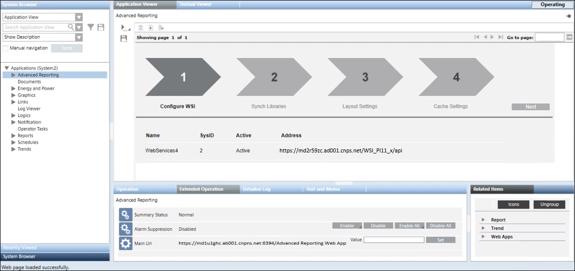 • The wizard on the Configuration Page - Advanced Reporting displays.
