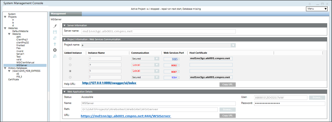 1. In the Project Information: Web Services Communication expander, from the Project name drop-down list, select a project to which you want to link the web services application.