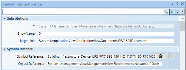- (Optional) In Symbol Instance Properties > Substitutions > TargetLink field, from System Browser drag and drop the UPS document node. When clicking on the related Link button in graphic, you will be able to navigate to the configured document node.