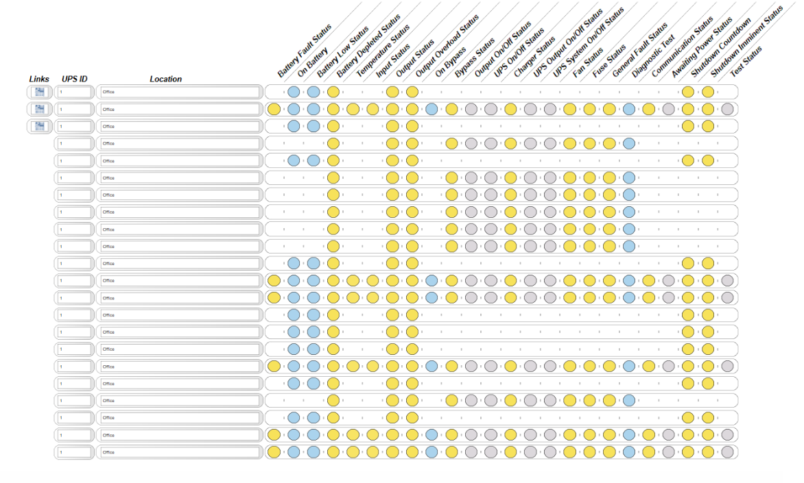 The Element Tree view contains a symbol instance for each row of the sample graphic up to a maximum of 22. Configure all the UPS devices required for your graphic as follows: