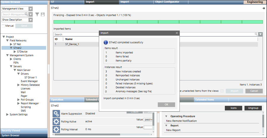 - When the import completes successfully, the Import dialog box displays a summary of the import information.