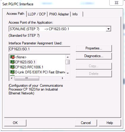 In the Access Point of the Application drop-down list, select CP1623.ISO if the fault-tolerant connection runs via MAC address (for example, CP443-1EX11).
