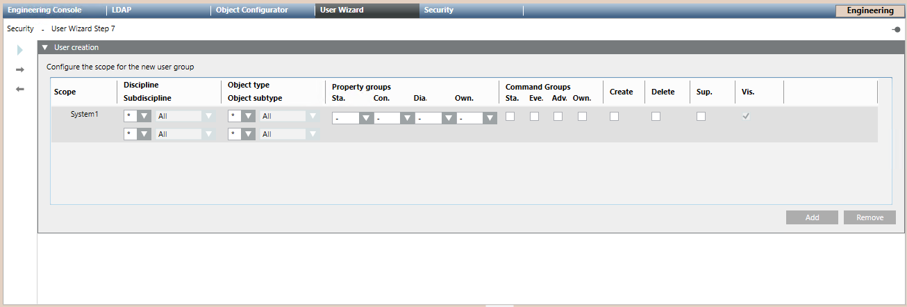 Under Configure the scope for the new user group, you can configure the scope for the new group. Define the scope rights as: