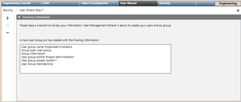 • The new user group is available in System Browser under Project > System Settings > Security.