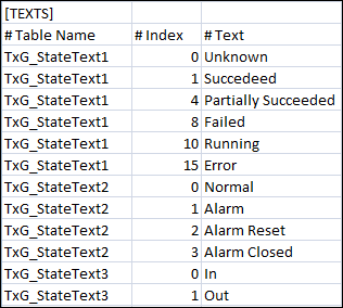 Table Name | Name of the text group. |