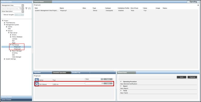If you need to modify the poll group intervals at any time, you can do so from the Extended Operation tab by specifying the new interval and clicking Apply.