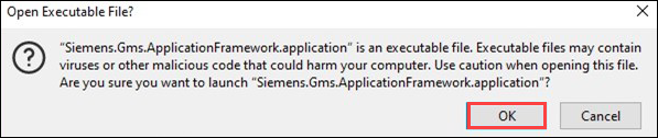 • Click OK to open the executable file.