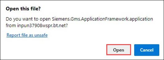 • For Edge browser, in the Open this file dialog box that displays, click Open.