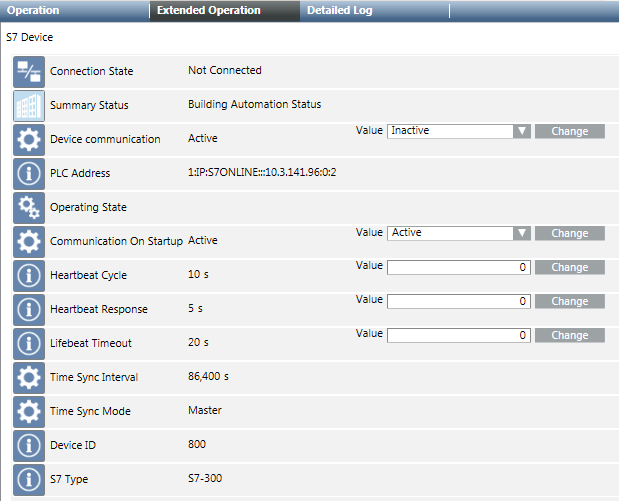 If Communication On Startup =Inactive, the device will never start the communication when the driver starts (even if Device communication =Active). In order to communicate with the S7 device, the Device communication must be set toActiveagain.- Heartbeat Cycle
