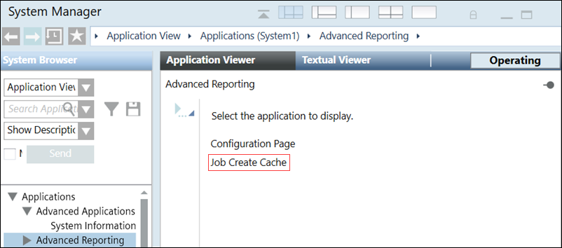 - Click the Application Viewer tab, and select the Job Create Cache from the menu options.
