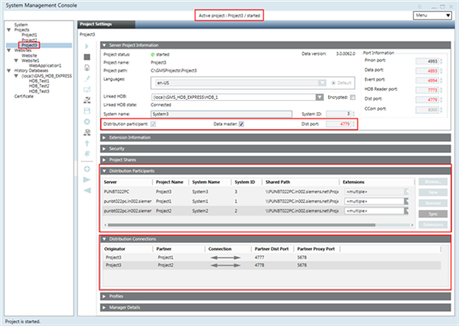 1. Repeat steps 7 to 15 to set up the third project, Project3, in distribution using a unique Dist port. Then add the distribution participants as projects Project1 and Project2 in the Originator project, Project3.