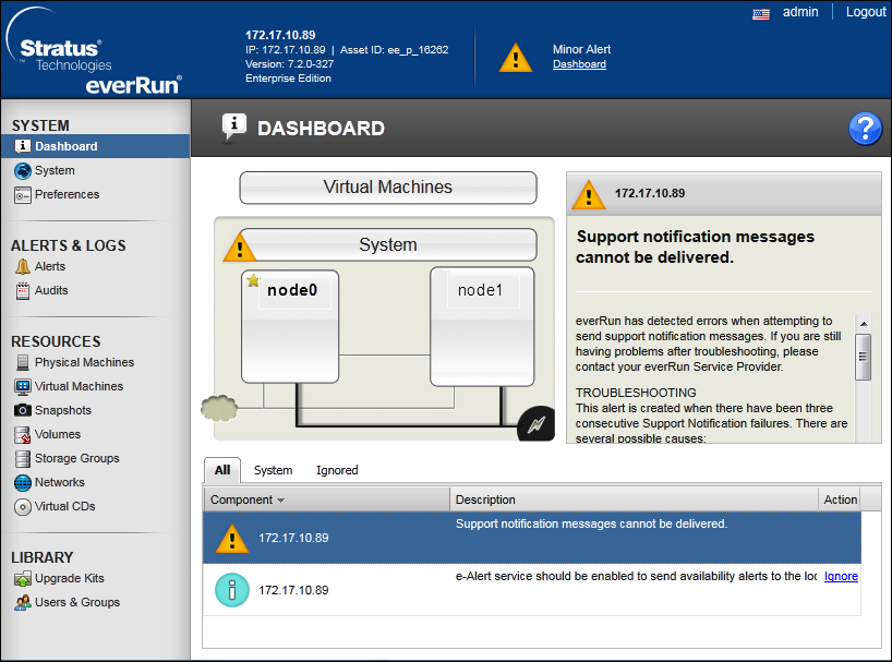 • Client does not lose the remote desktop connection to the protected Virtual Machine and all the Notification features are still accessible. The star icon is shifted to node1 making node1 as the primary physical machine.