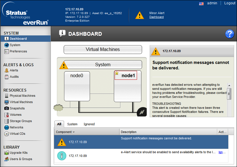 1. Select Physical Machines to verify that node1 is the primary physical machine.