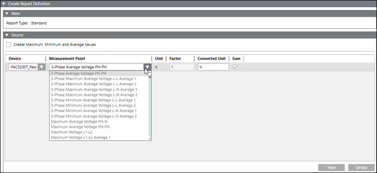 In the Source expander, select the Create Maximum, Minimum andAverage Values check box.