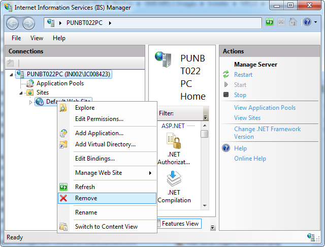 Do not delete the default website created by IIS if other products are installed on the same system where you have installed IIS.