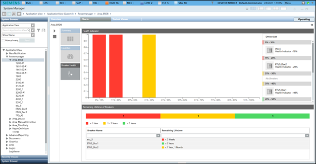 - Remaining lifetime of breakers indicates the remaining lifetime for all the breakers present under the selected node.