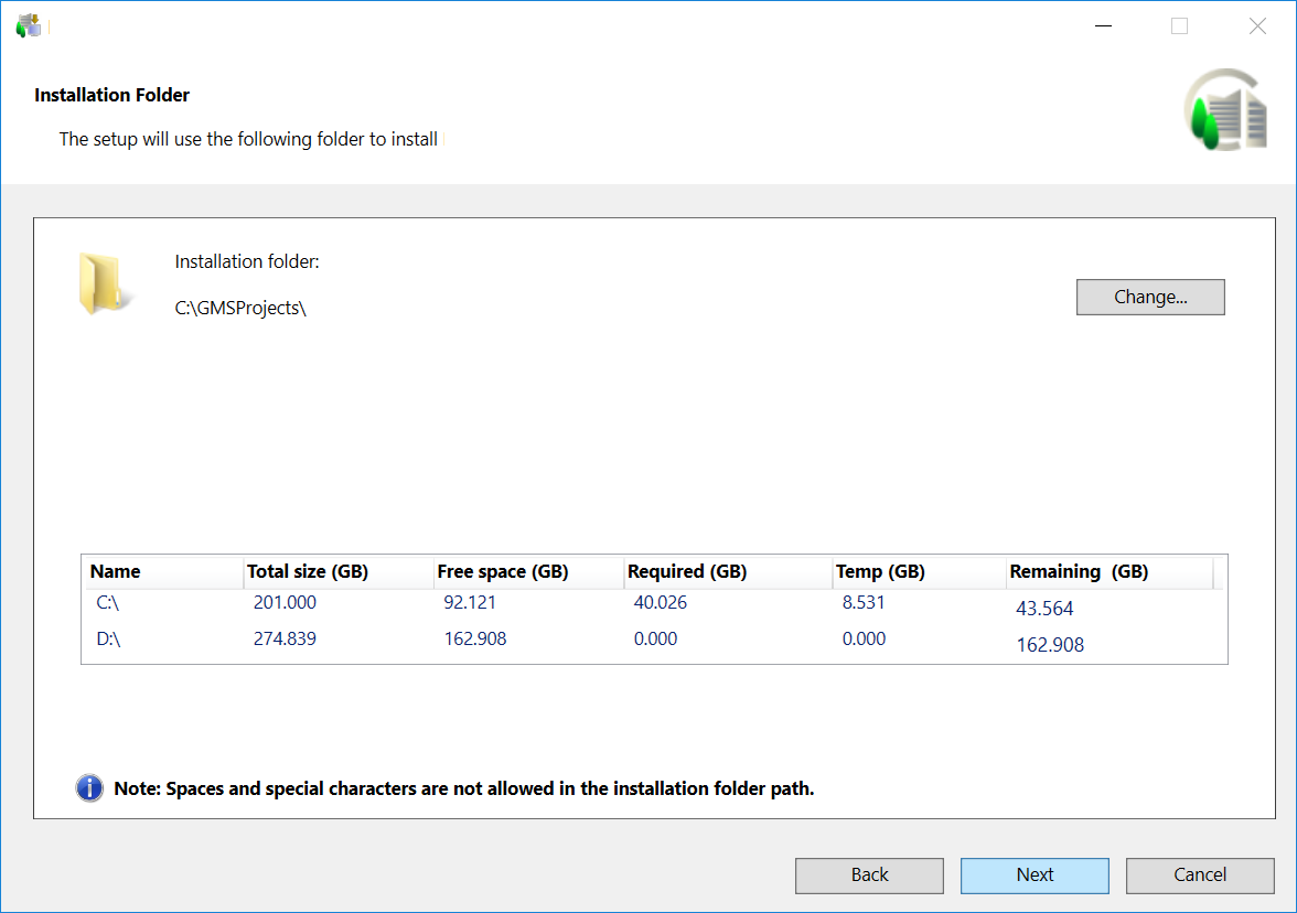 If a negative number in red displays in the Remaining Space field, you must re-run the setup after freeing the required disk space. (See Tips to Free Up Disk Space in Installation Folder > Verify the Installation Environment)