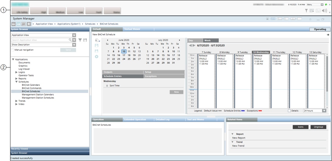 2 | Work area | Large central portion of the screen below the Summary bar. The window displayed here will vary depending on what system function is being used. It will typically contain the System Manager window. It can also display the Event List, or Investigative or Assisted Treatment windows, the system help and external documents or applications. |