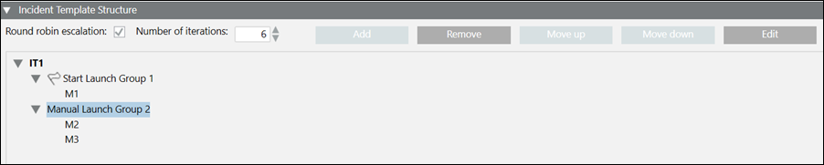 • Launch Group: View the whole incident template structure consisting of launch groups and added notification templates.