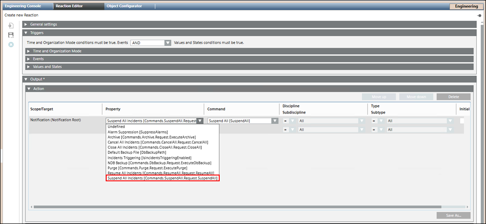 • To suspend all the active incidents, select Suspend All Incidents. The command structure [Commands.SuspendAll.Request.SuspendAll] varies for other commands respectively.