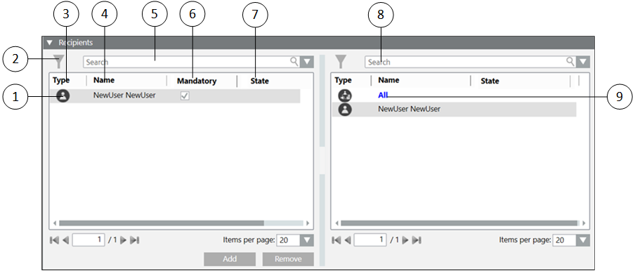 8 | Search | Search for a particular recipient from the list of available recipients. |