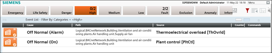 Intervention Information: BACnet Priority: 2 - BACnet Notification Class: 22