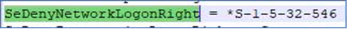 1. Open initial.cfg in an editor such as Notepad and locate SeDenyNetworkLogonRight.