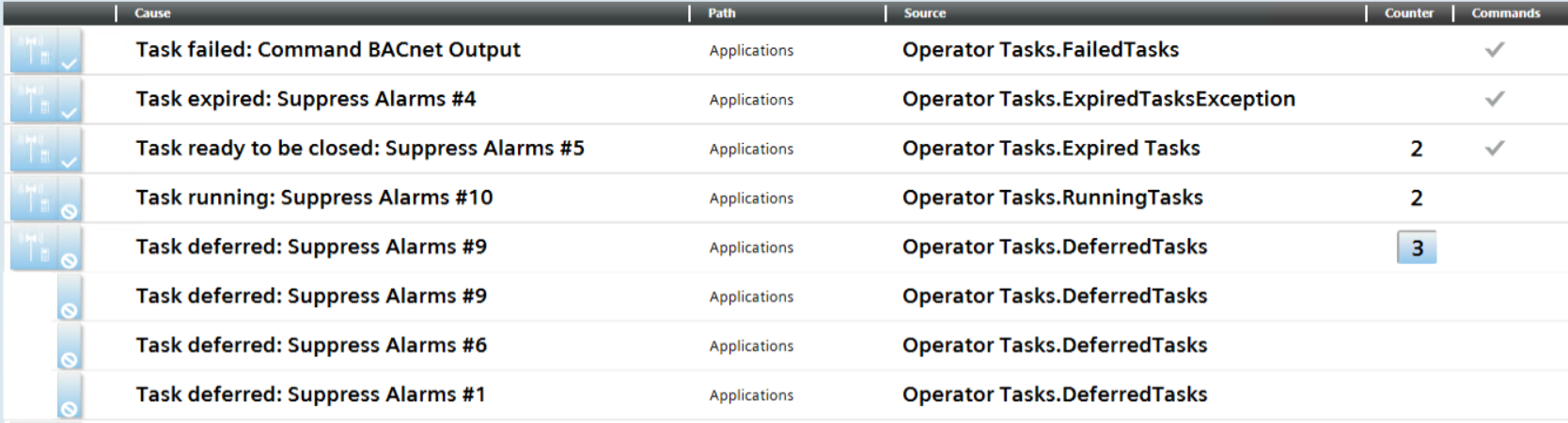 Operator Tasks Reminders in Event List