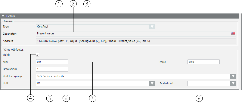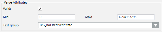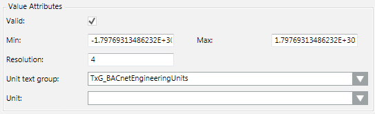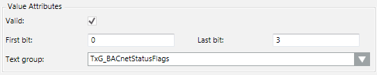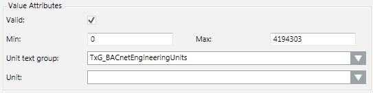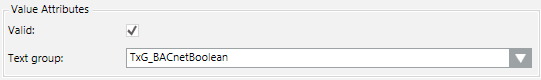 List of available text groups. New or updated text groups must be refreshed by pressing the F5 key. For value-scaled units, the TxG_EngineeringUnits must be selected.