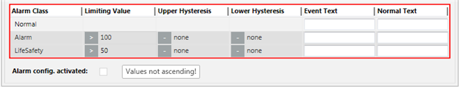 6 | Alarm config. activated | When the check box is selected, the alarm is set to active. |