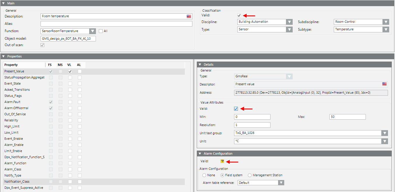 (gray check), the information has a higher priority than the information for the functions or the object model. - If Valid is cleared, the information from the function
