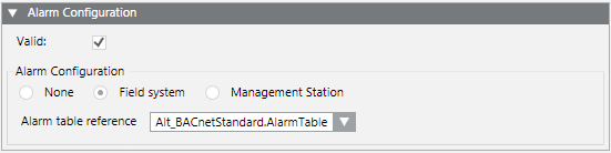 - In the Alarm Configuration expander, select the Valid checkbox so it changes from blue to gray.