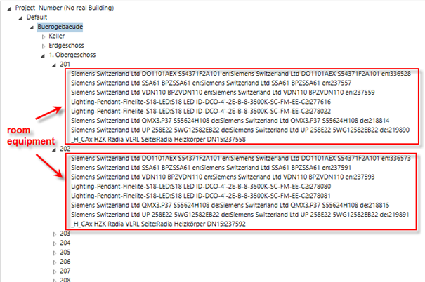 - Only equipment that can be assigned to any room is currently supported by the BIM Viewer. This assignment is performed using a “containment” strategy, i.e. the BIM Viewer tries to find the room that (geometrically) contains the equipment. If the equipment is outside of any room, it is skipped.
